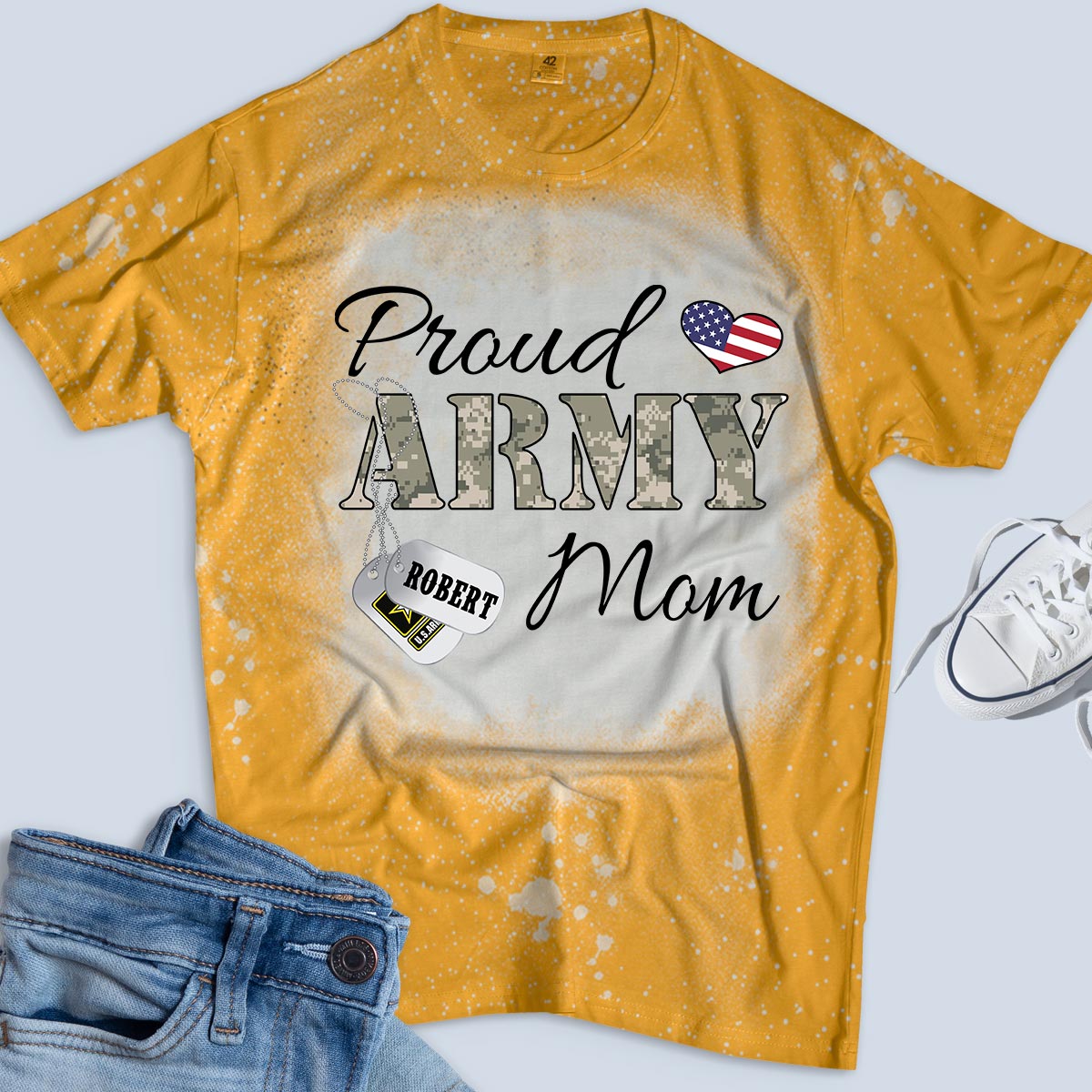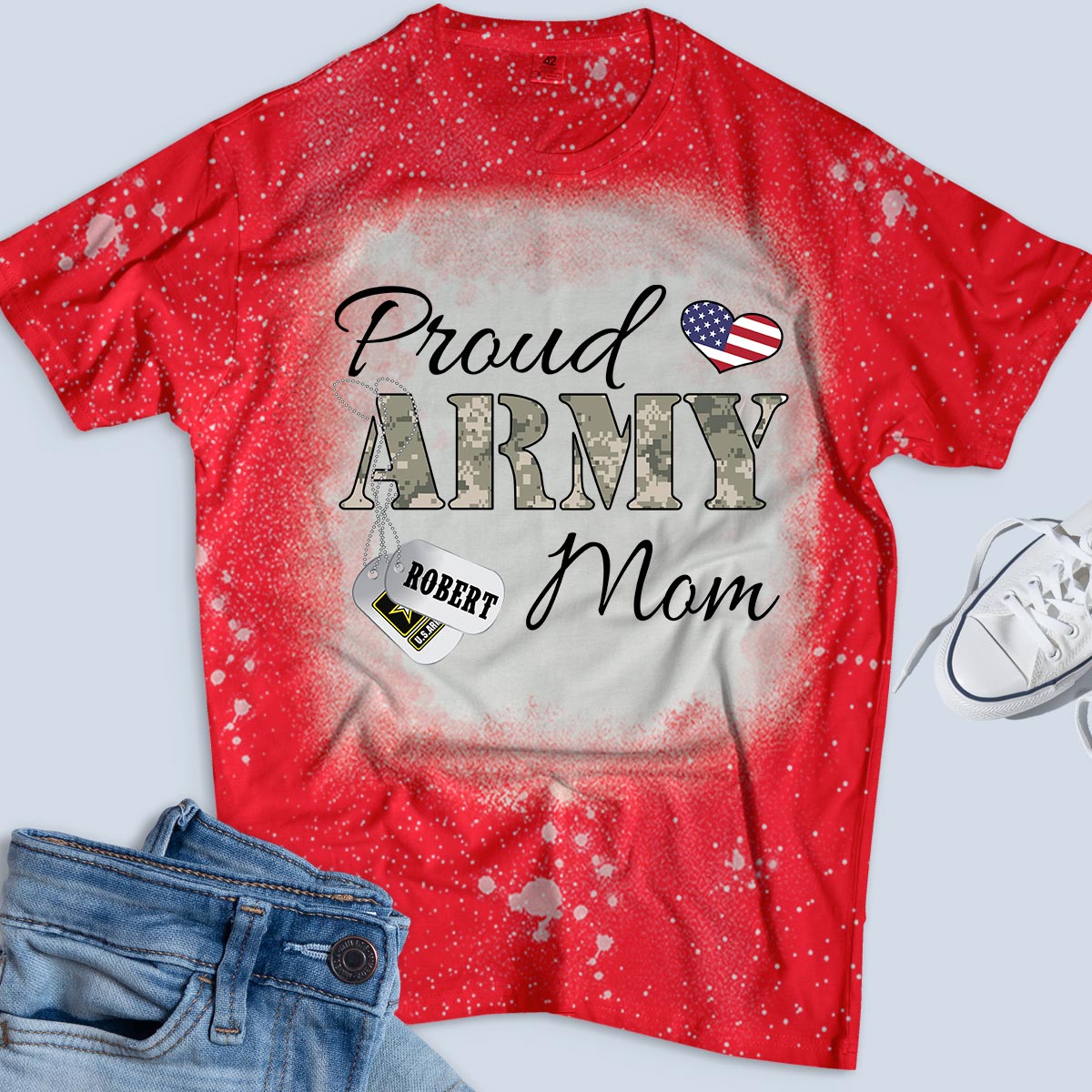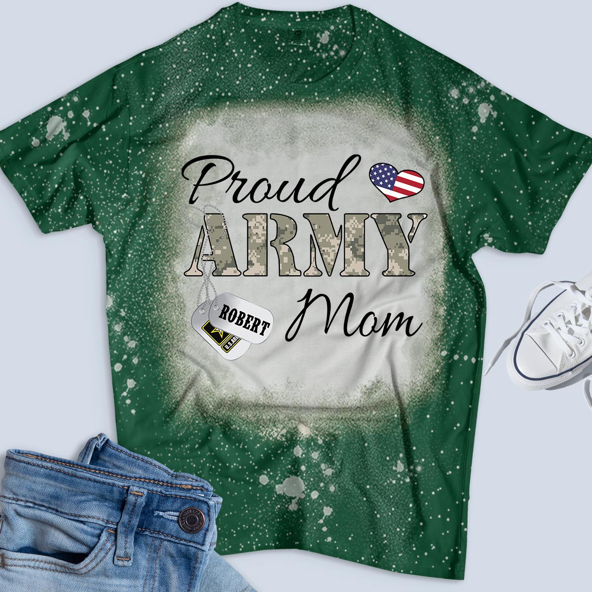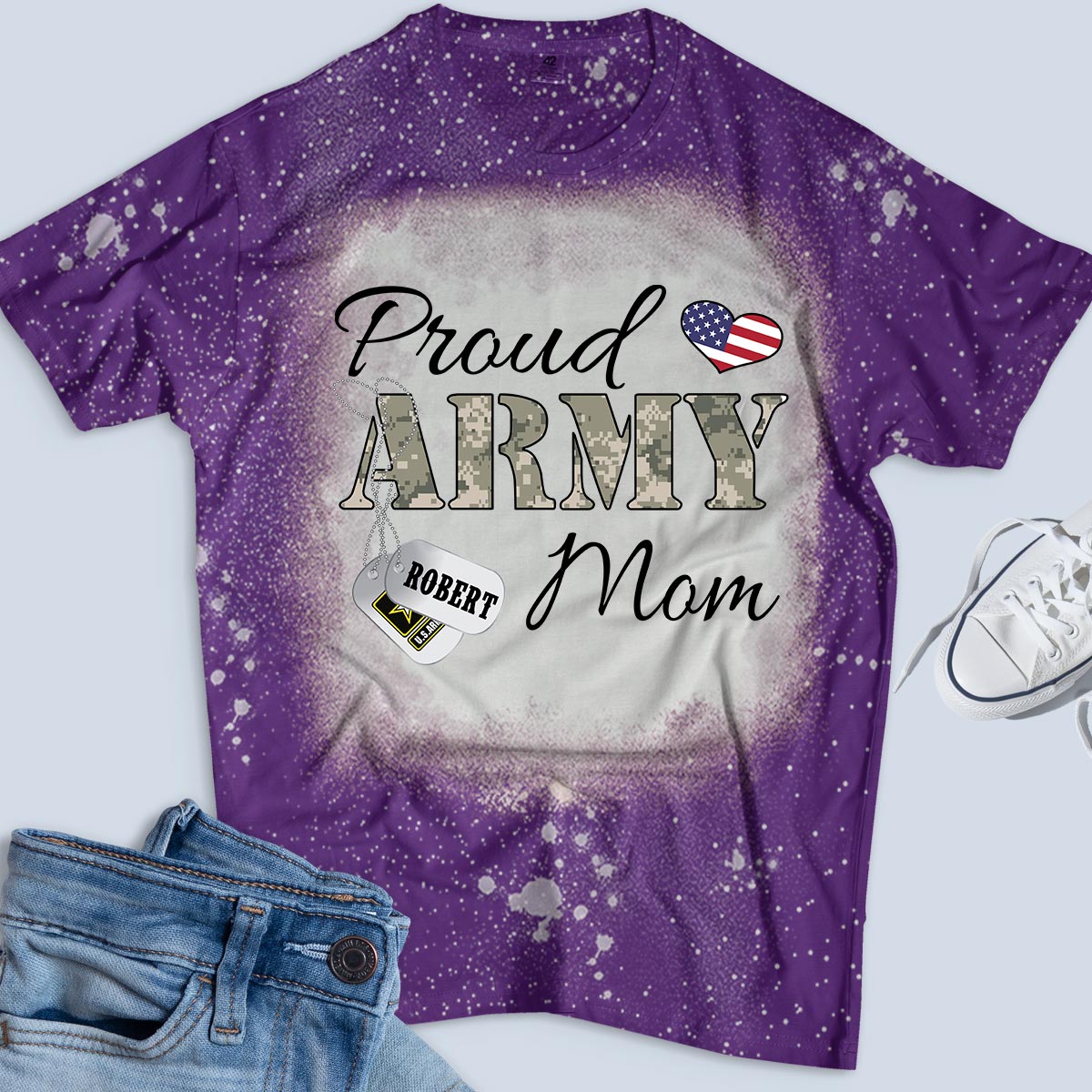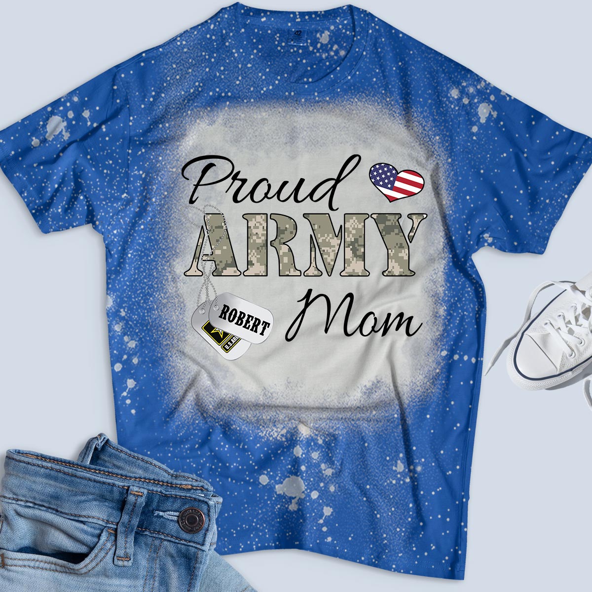 Personalized Name & Family Member Proud Army Mom, Marine Wife,Navy Aunt, Usaf Sister Uscg Dad Military Bleach Tee – K1702 – Trhn