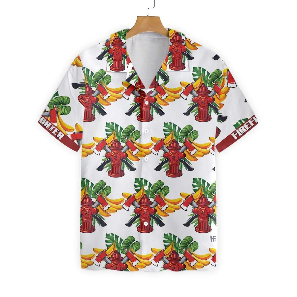 Personalized Name Firefighter Tropical Banana Pattern Hawaiian Aloha Shirts Hawaiian Shirt For Men, Hawaiian Shirt For Women, Aloha Shirt
