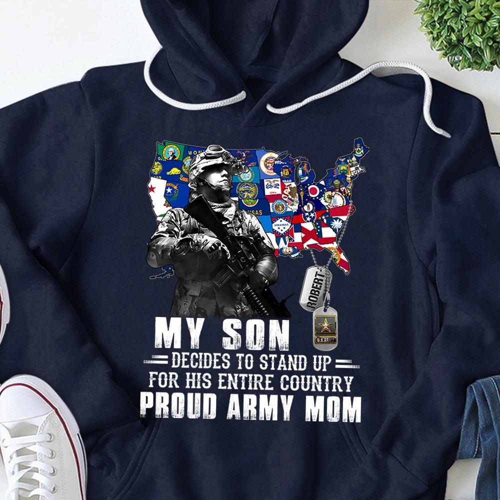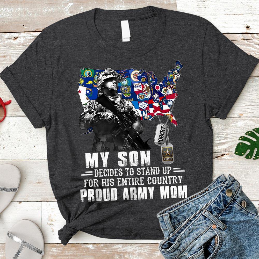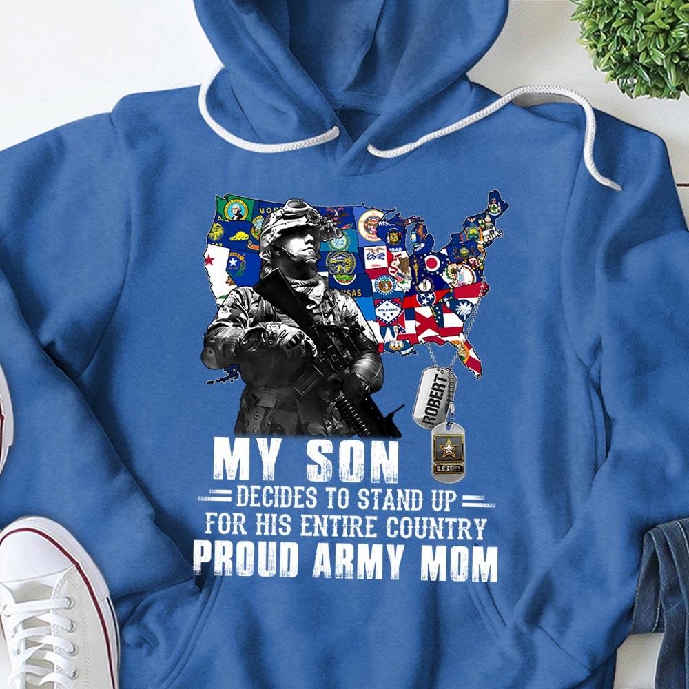 Personalized Name, Logo Military Branch & Family Member My Son Decides To Stand Up For His Entire Country Military Shirt – K1702 – Huts