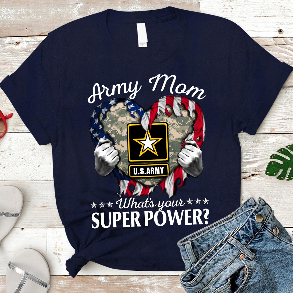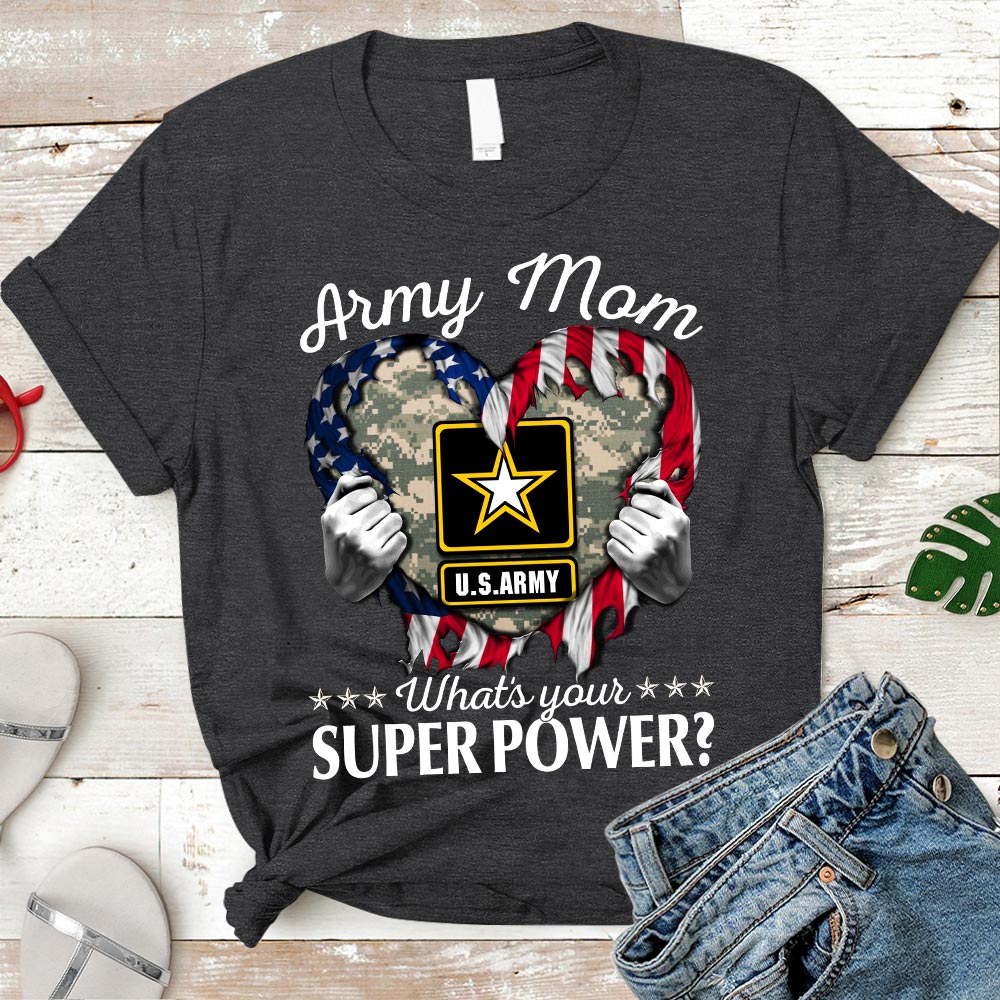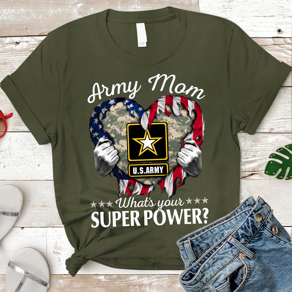 Personalized Name & Military Branch, Family Member Army Mom What’S Your Super Power? Military Tshirt Hk10 Trhn