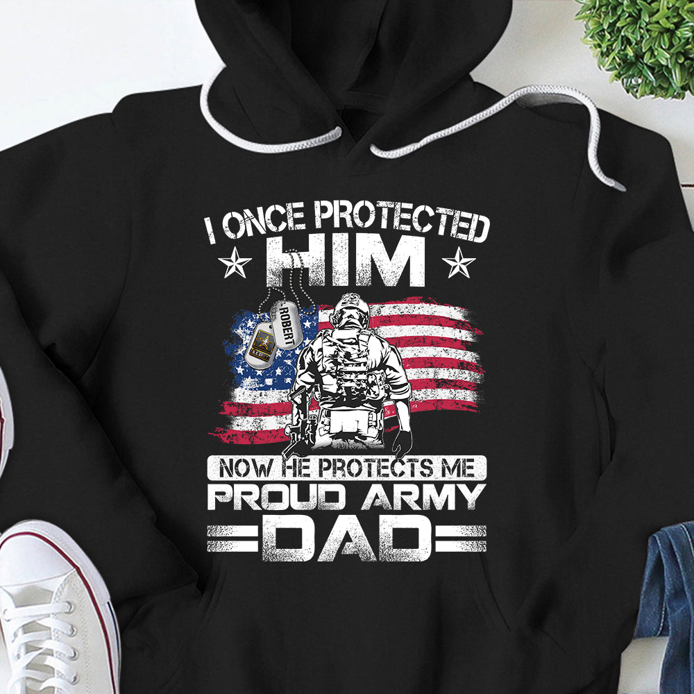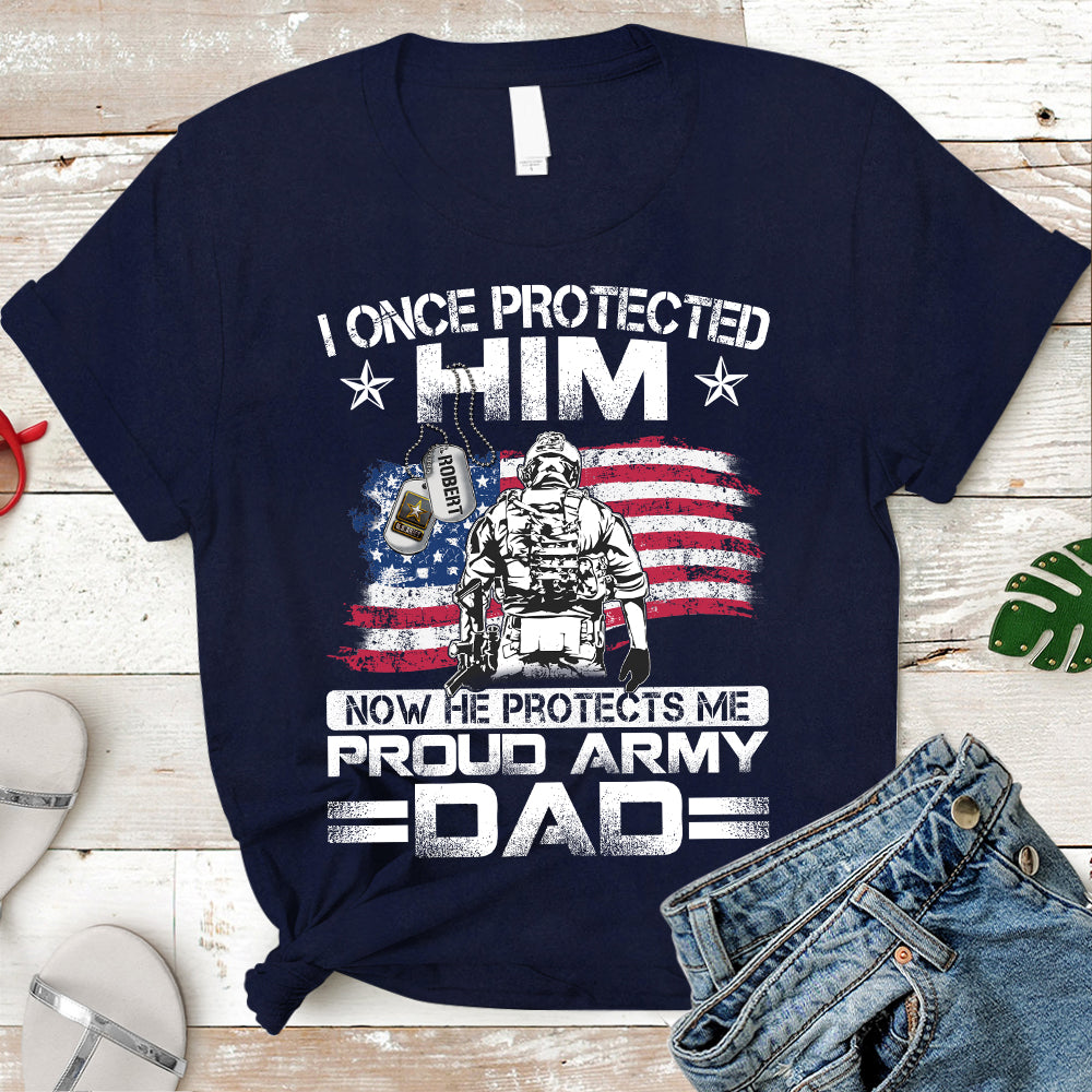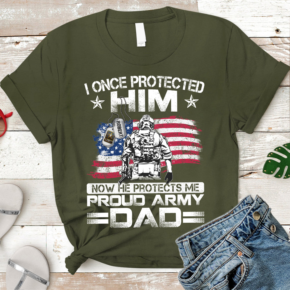 Personalized Name , Military Branch & Family Member I Once Protected Him Now He Protects Me Proud Army Dad Tshirt Military Famliy Member Hk10 Trhn