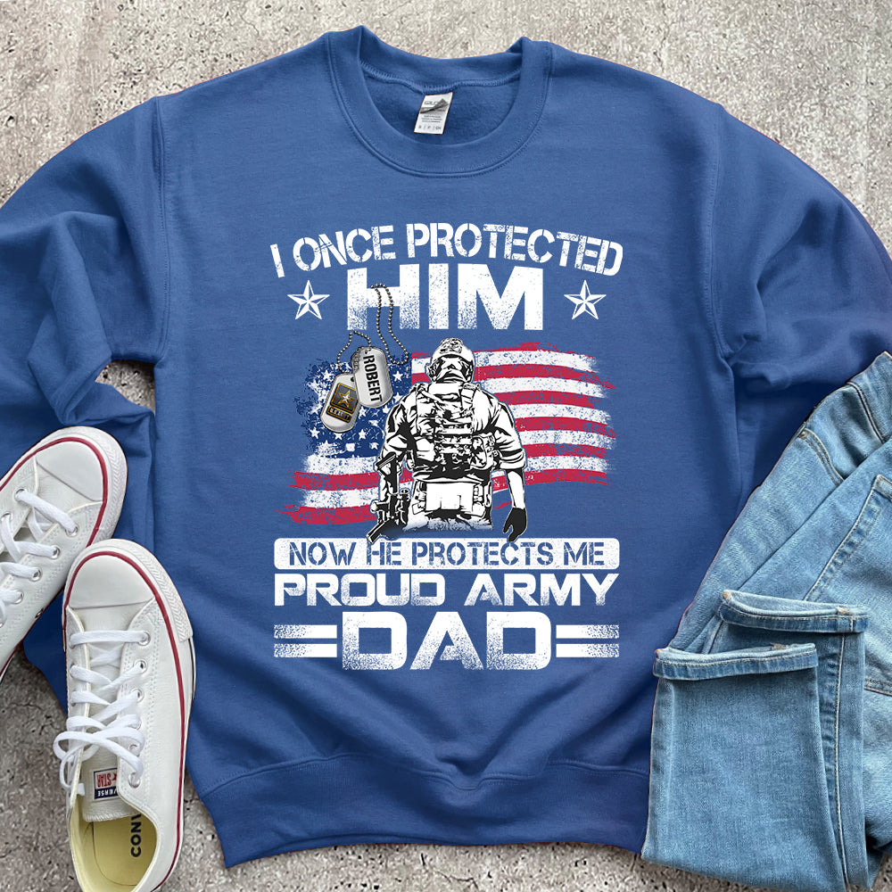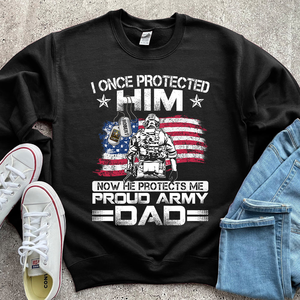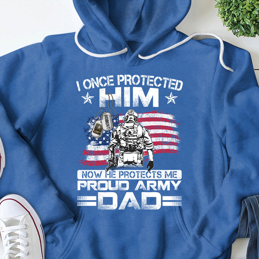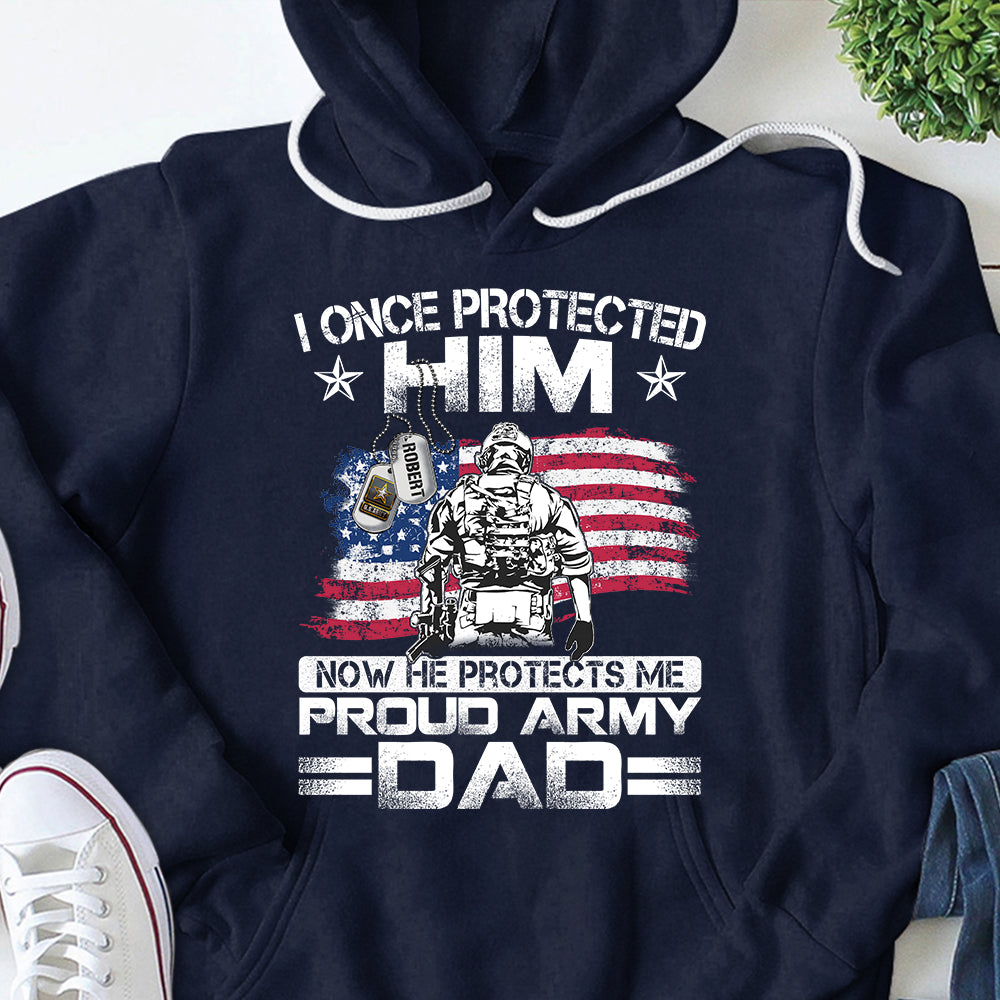 Personalized Name , Military Branch & Family Member I Once Protected Him Now He Protects Me Proud Army Dad Tshirt Military Famliy Member Hk10 Trhn