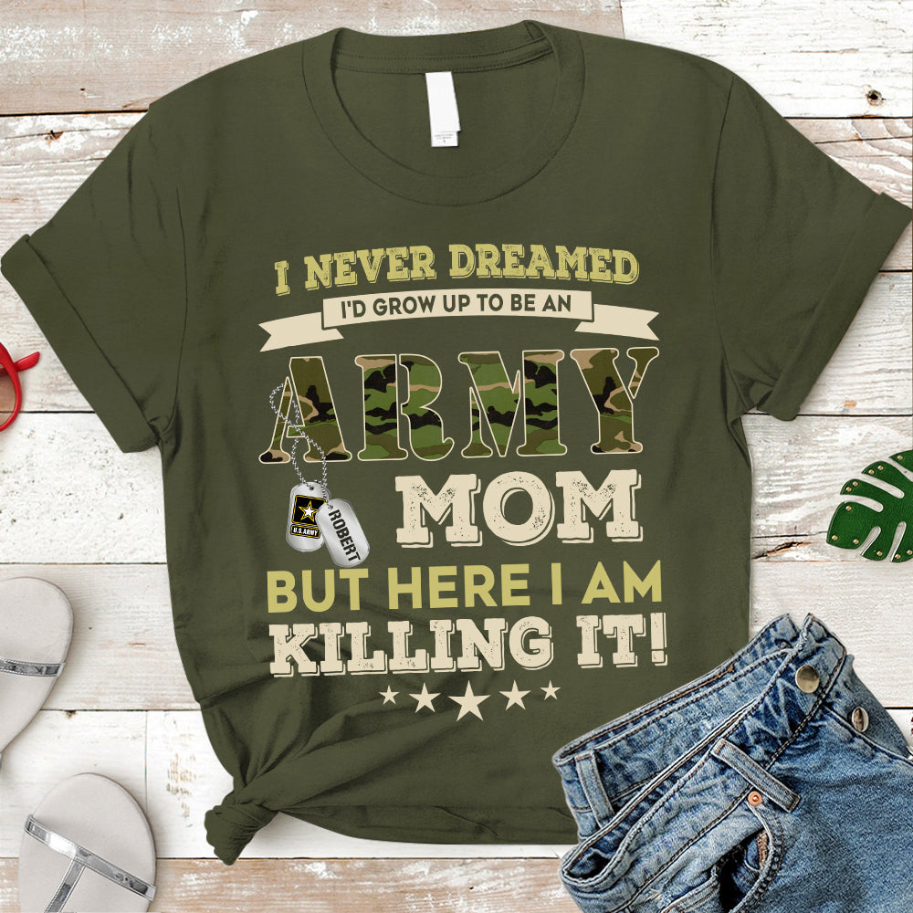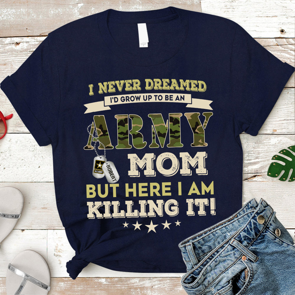 Personalized Name, Military Branch I Never Imagined I’D Grow Up To Be An Military Mom But Here I Am Killing It Military Tshirt K1702 Trhn