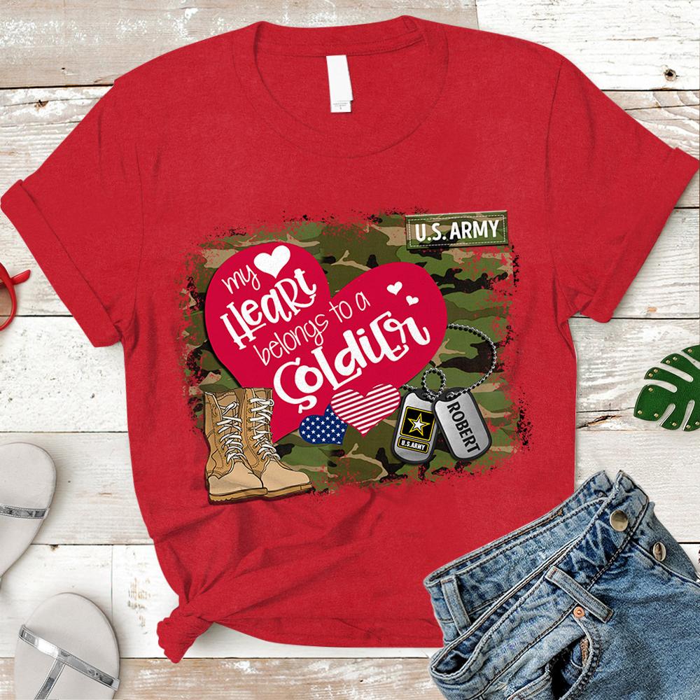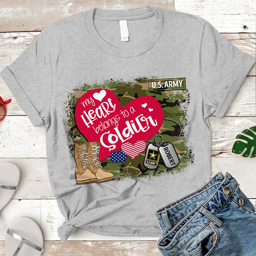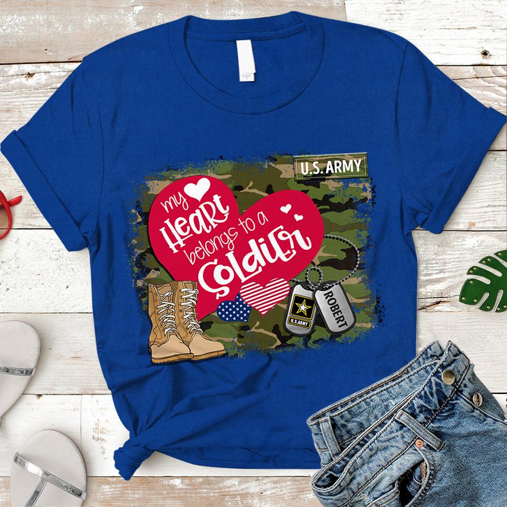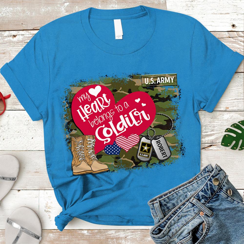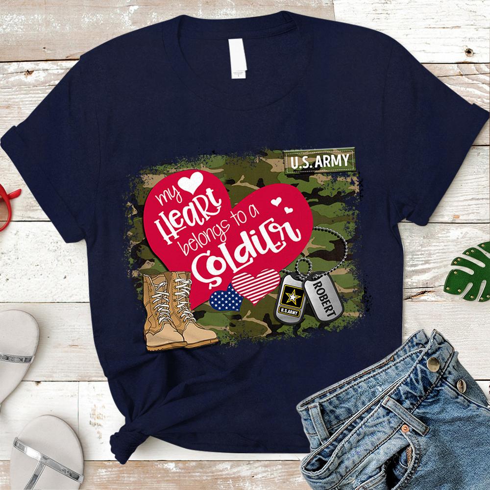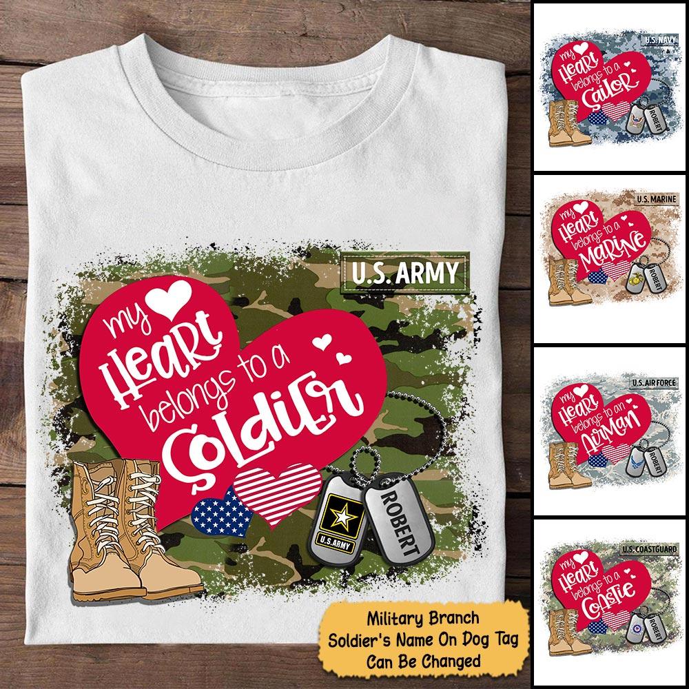 Personalized Name On Dog Tag & Military Branch – My Heart Belongs To Soldier – Military Shirt -Trhn – K1702