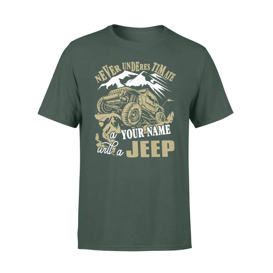 So whether you're looking to show off your own name or create a personalized gift for someone special, LateAndLow Store has got you covered. Start designing your own custom Personalized Name with a Jeep – Standard T-shirt print-on-demand product today, and let us bring your vision to life!