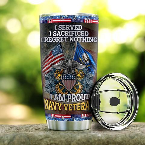 Personalized Navy Veteran Stainless Steel Tumbler, Personalized Tumblers, Tumbler Cups, Custom Tumblers