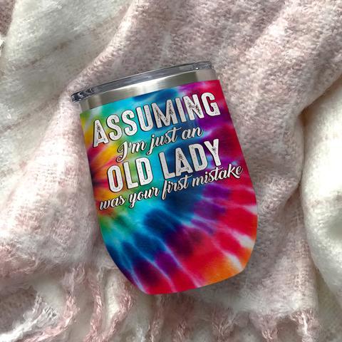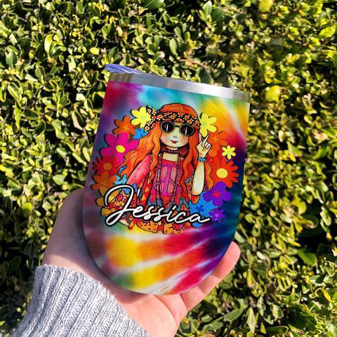 Personalized Old Lady Hippie Wine Tumbler, Personalized Tumblers, Tumbler Cups, Custom Tumblers