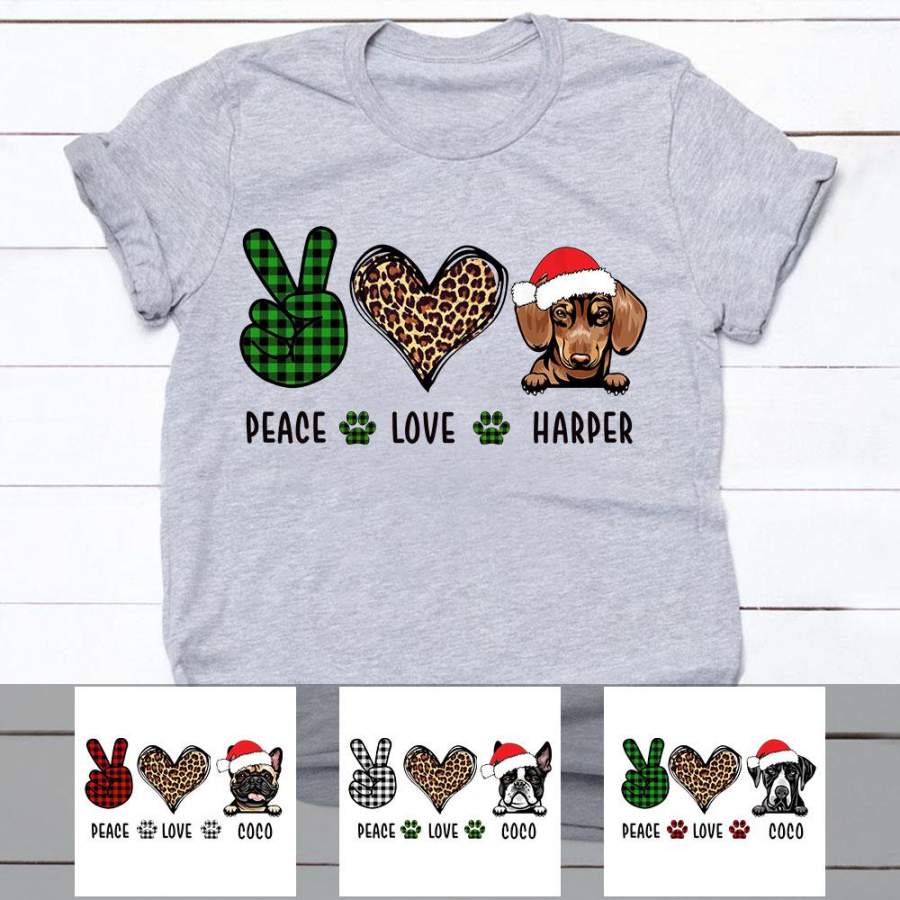 Personalized Peace Love Dog Christmas T Shirt OB154 30O58