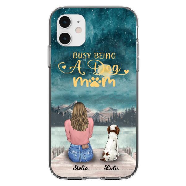 Personalized Phone Case Dog Mom – Gift For Dog Lovers With Upto 4 Dogs – Busy Being A Dog Mom