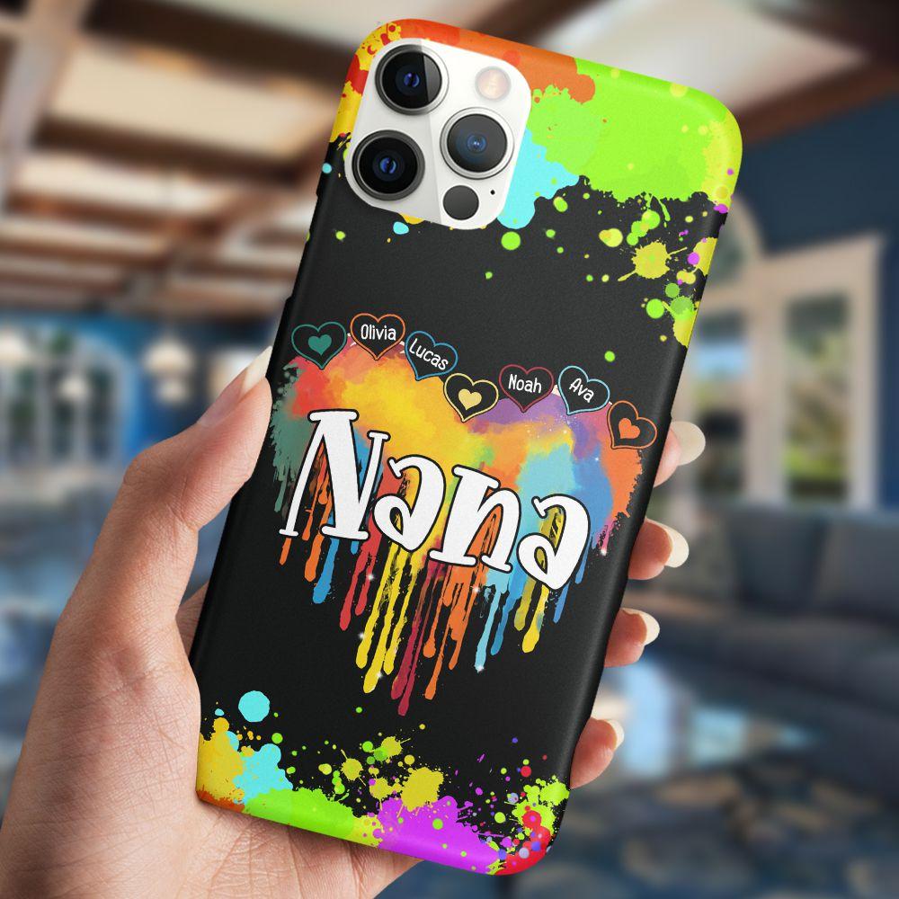 Personalized Phone Case For Nan, Personalized Gift For Nan, Grandma Melting Colorful Heart Personalized Phone Cases
