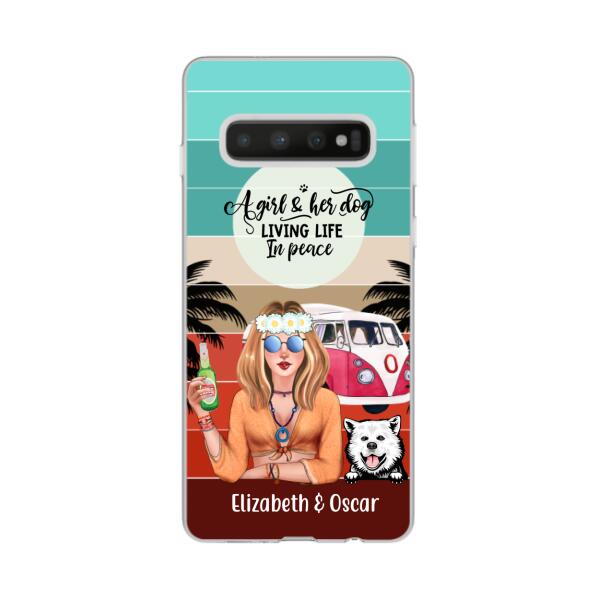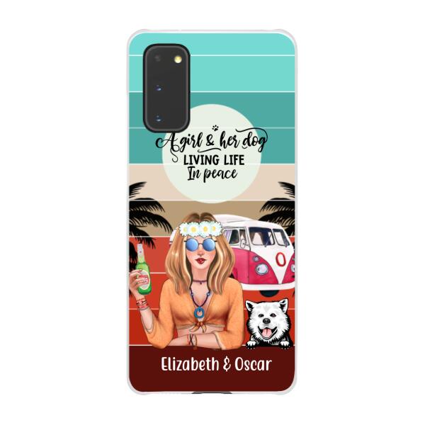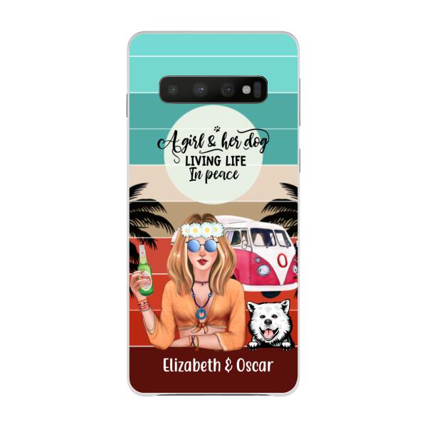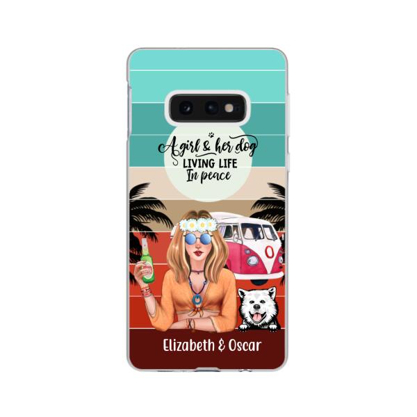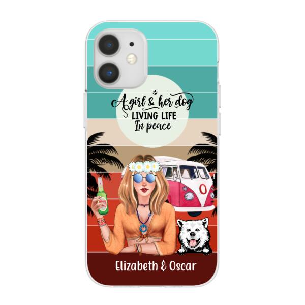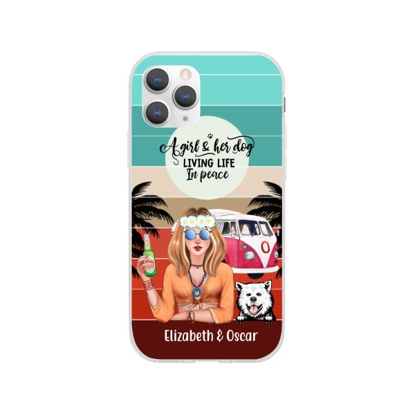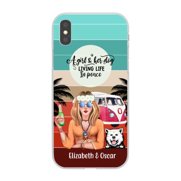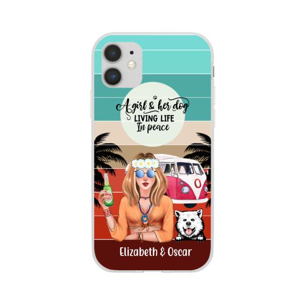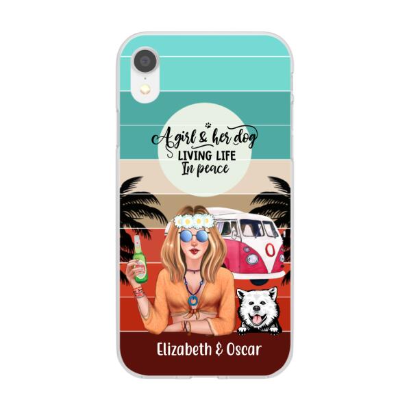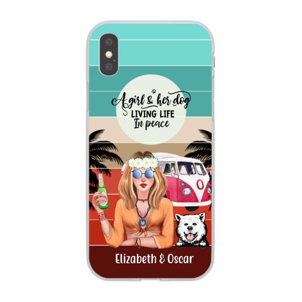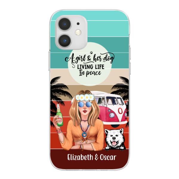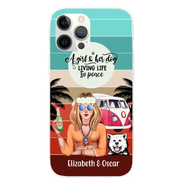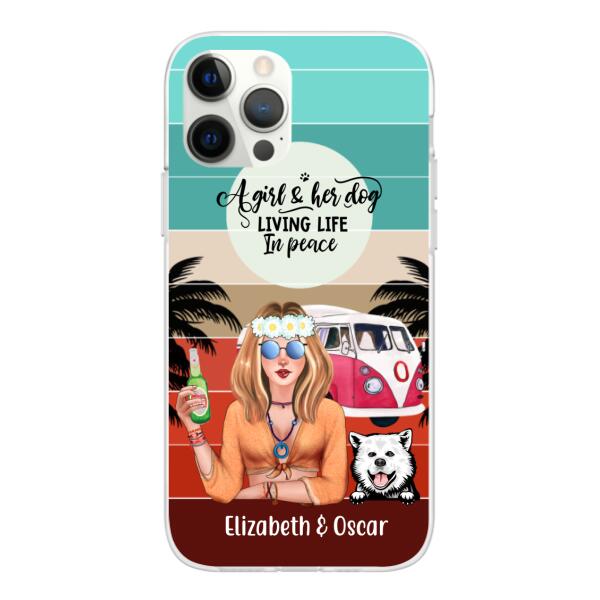 Personalized Phone Case, Hippie Girl And Dogs Custom Gift For Dog And Hippie Lovers