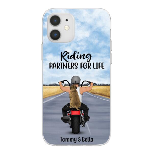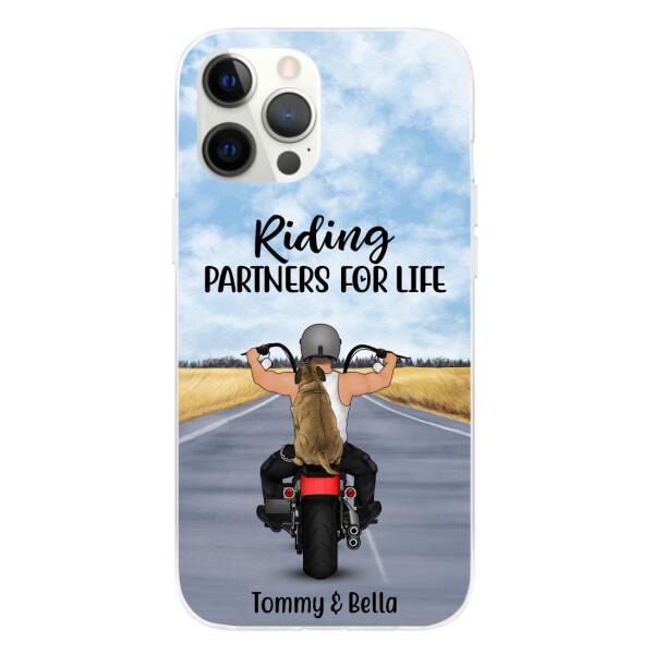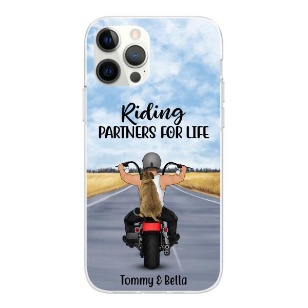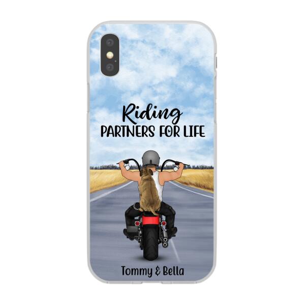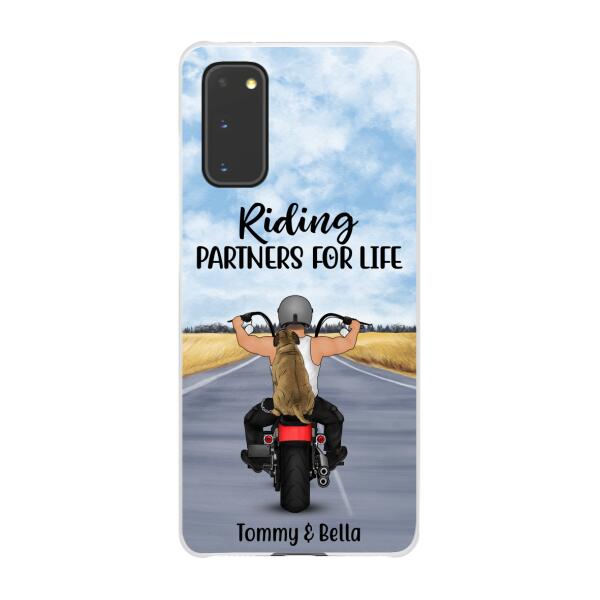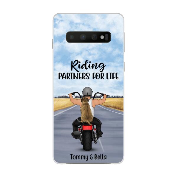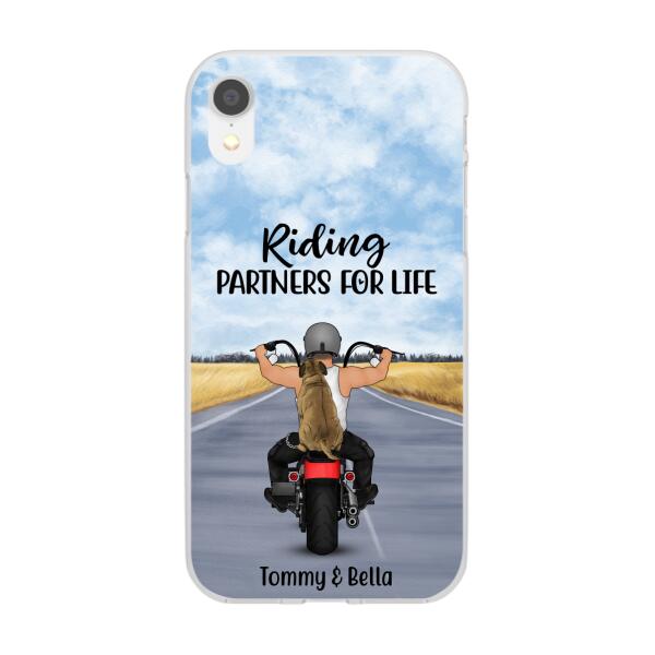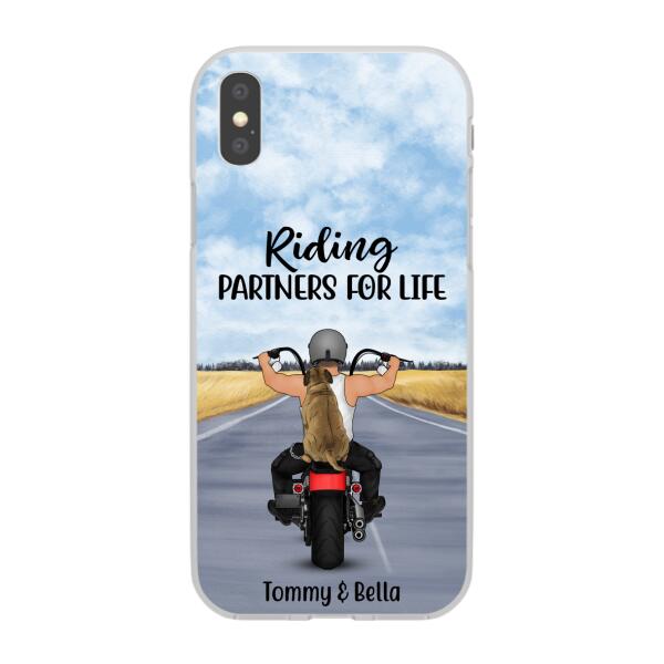 Personalized Phone Case, Motorcycle Man With Dog, Dog Dad, Custom Gift For Bikers And Dog Lovers