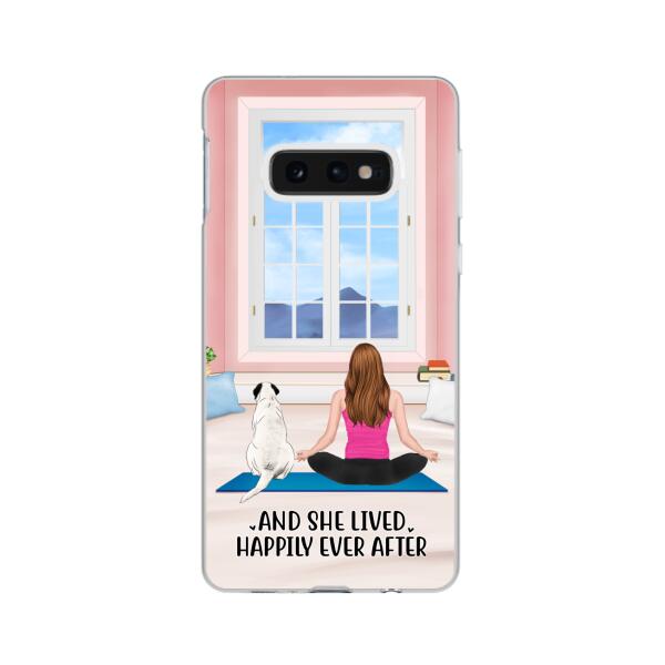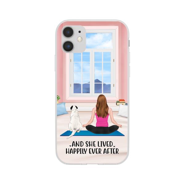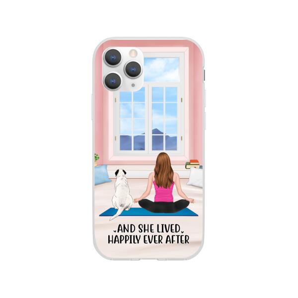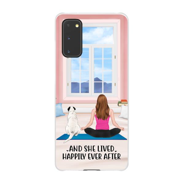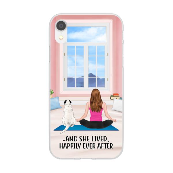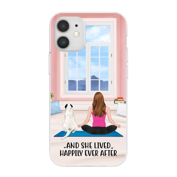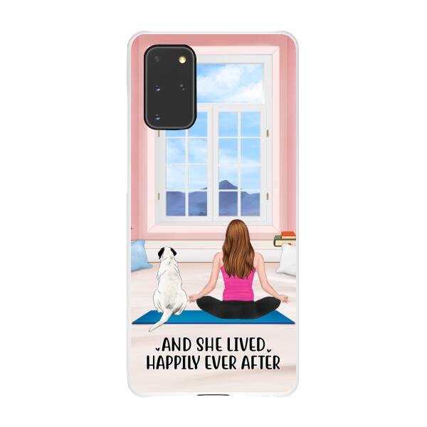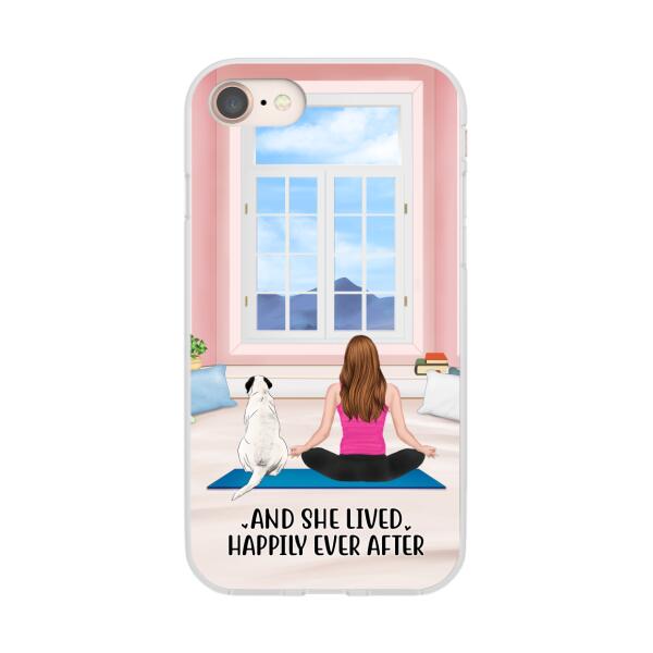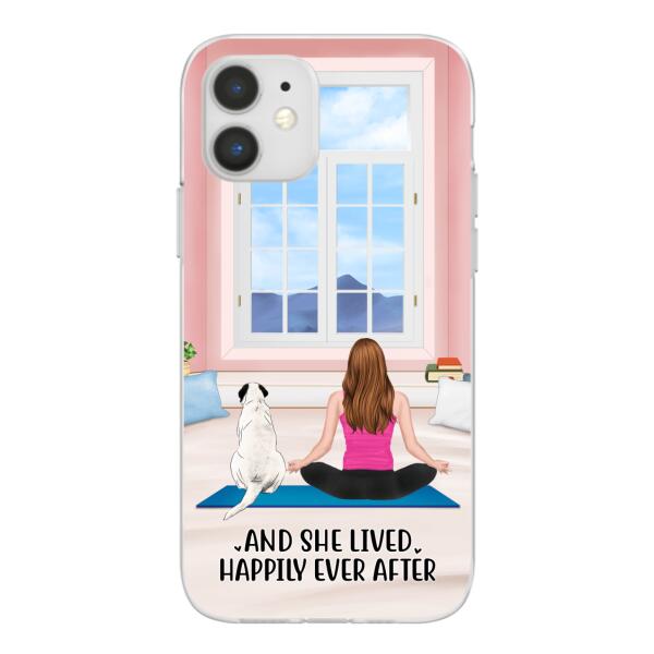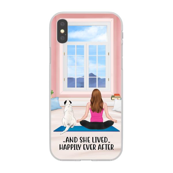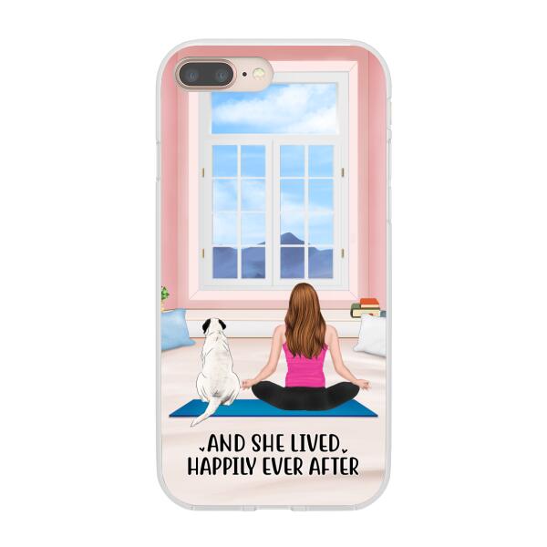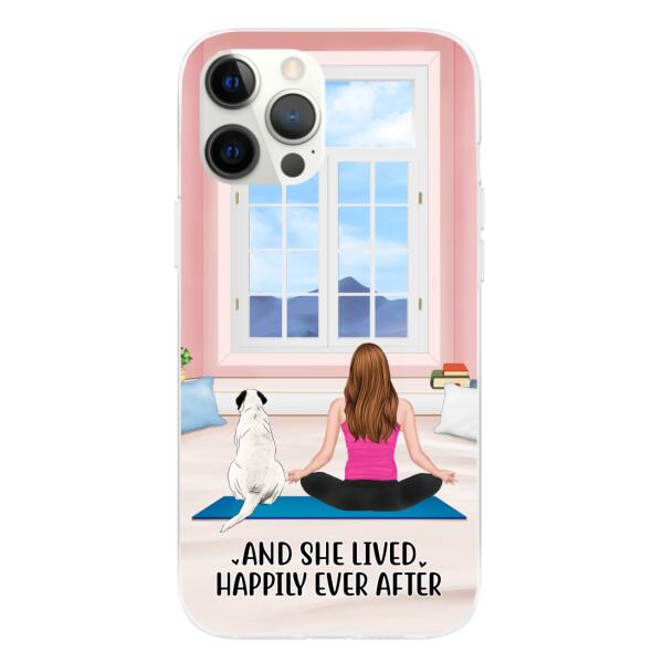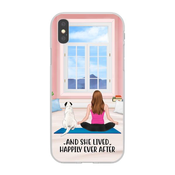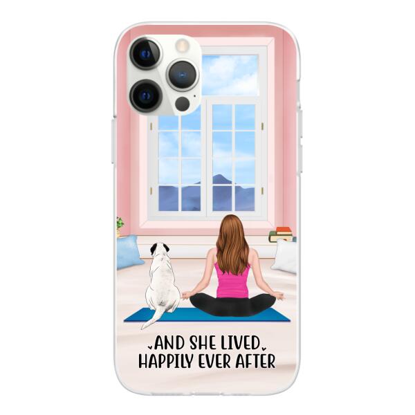 Personalized Phone Case, Yoga Girl With Pets In House – Gift For Yoga, Dog And Cat Lovers