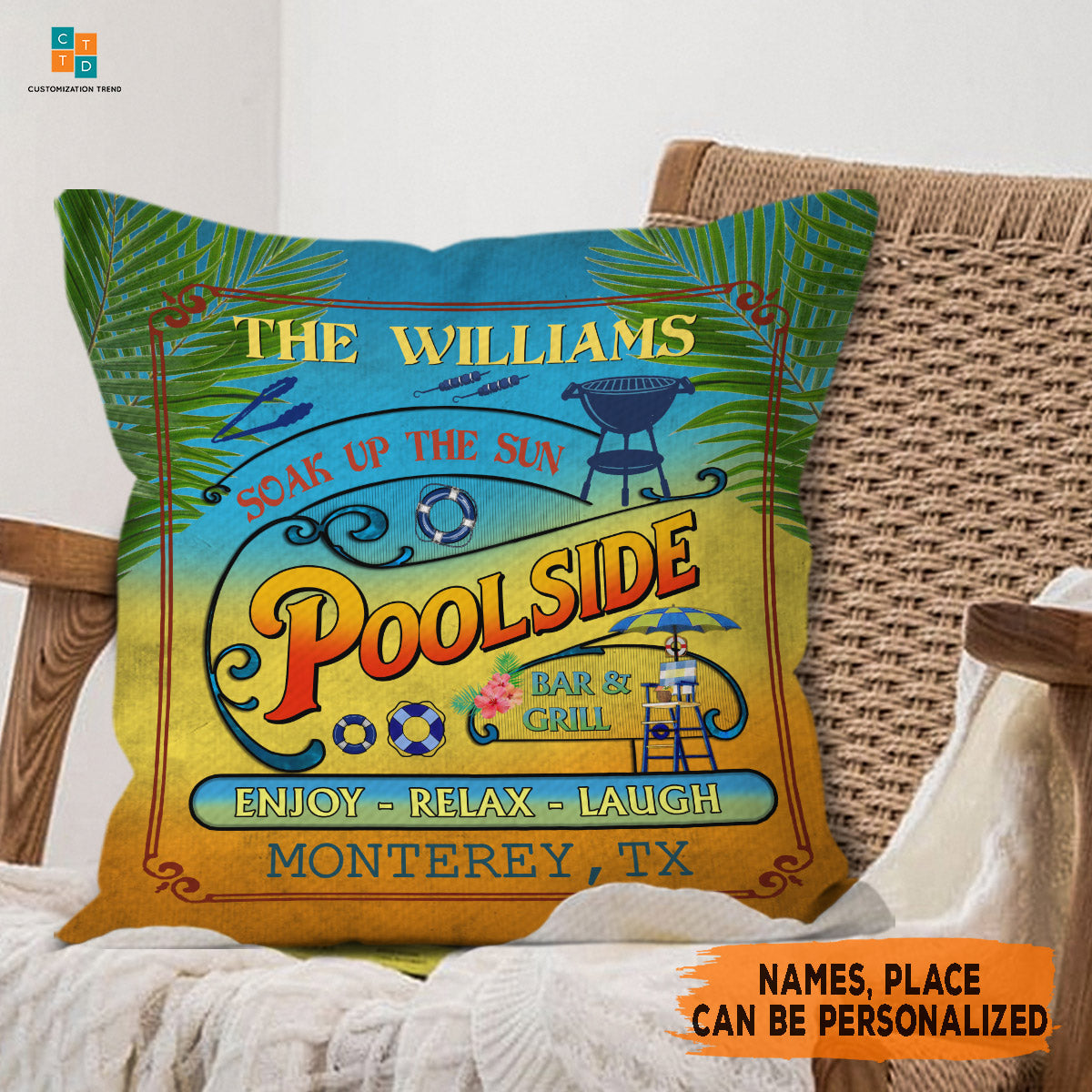 Personalized Poolside Enjoy Relax Laugh Pillow , Custom Family Pillow