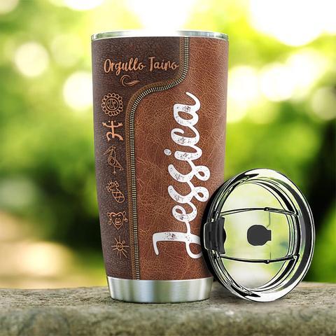 Personalized Puerto Rico Taino Leather Style Stainless Steel Tumbler, Personalized Tumblers, Tumbler Cups, Custom Tumblers