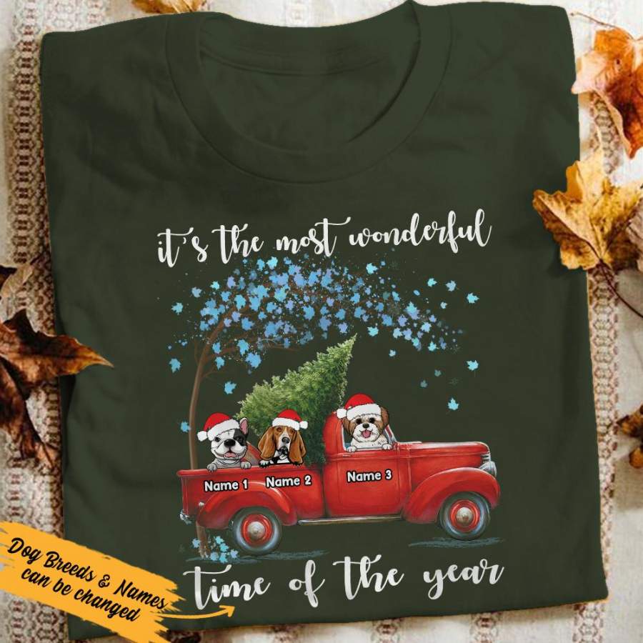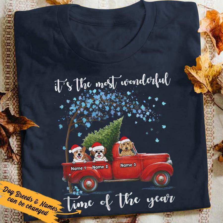 Personalized Red Truck Dog Christmas The Most Wonderful Time T Shirt NB261 87O36