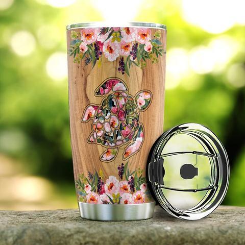 Personalized Rose Turtle Stainless Steel Tumbler, Personalized Tumblers, Tumbler Cups, Custom Tumblers