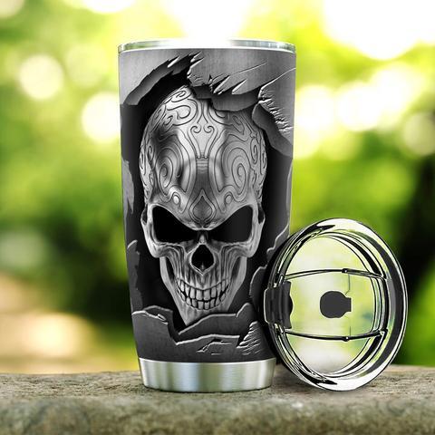 Personalized Silver Skull Stainless Steel Tumbler, Personalized Tumblers, Tumbler Cups, Custom Tumblers