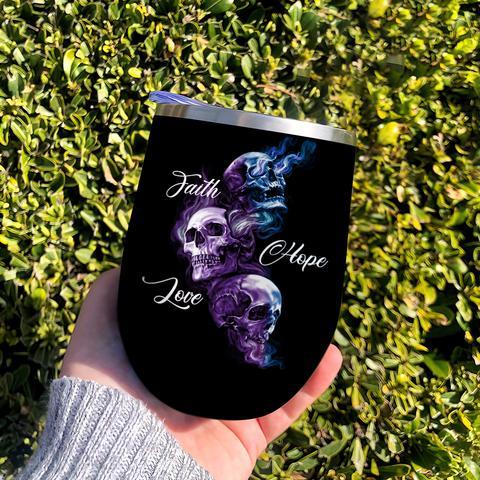 Personalized Skull Faith Wine Tumbler, Personalized Tumblers, Tumbler Cups, Custom Tumblers