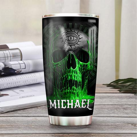 Personalized Skull Green Fire Metal Style 2 Stainless Steel Tumbler, Personalized Tumblers, Tumbler Cups, Custom Tumblers