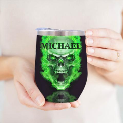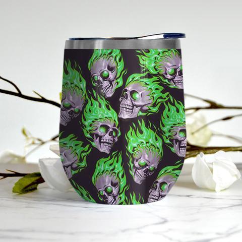 Personalized Skull Green Fire Wine Tumbler, Personalized Tumblers, Tumbler Cups, Custom Tumblers