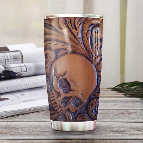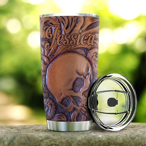 Personalized Skull Leather Style Stainless Steel Tumbler, Personalized Tumblers, Tumbler Cups, Custom Tumblers