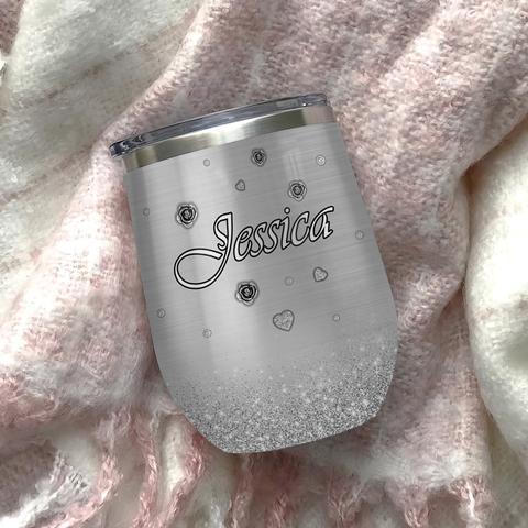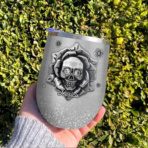 Personalized Skull Rose Jewelry Style Wine Tumbler, Personalized Tumblers, Tumbler Cups, Custom Tumblers
