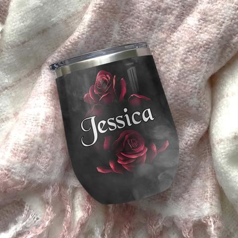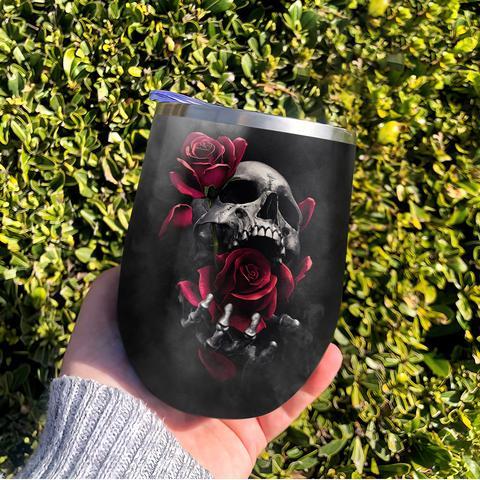 Personalized Skull Rose Wine Tumbler, Personalized Tumblers, Tumbler Cups, Custom Tumblers