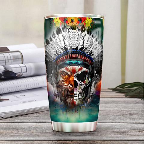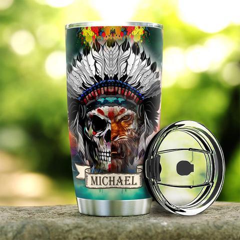 Personalized Skull Tiger Indian Tribal Stainless Steel Tumbler, Personalized Tumblers, Tumbler Cups, Custom Tumblers