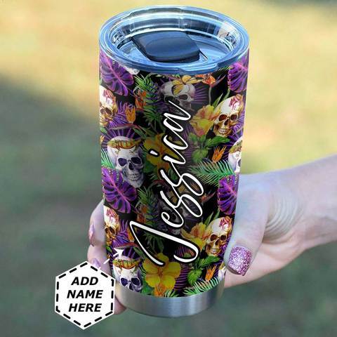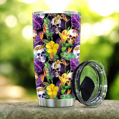 Personalized Skull Tropical Survive During Pandemic Watercolor Stainless Steel Tumbler, Personalized Tumblers, Tumbler Cups, Custom Tumblers