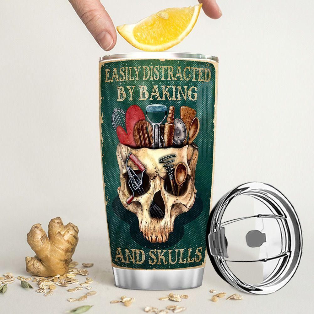 Personalized Skull Tumbler – Custom Name Baking Skull Stainless Steel Tumbler 20Oz Colorful For Unisex