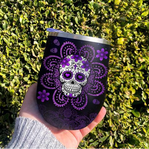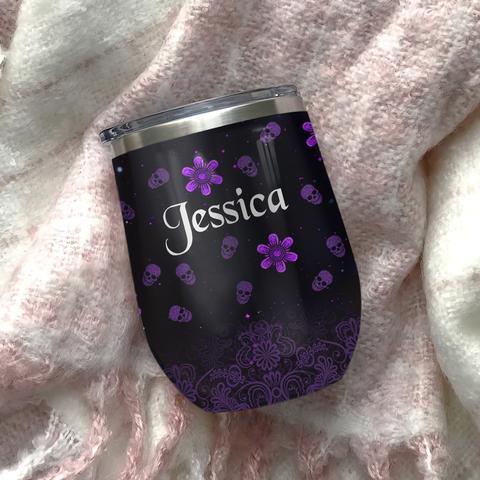 Personalized Skull Violet Wine Tumbler, Personalized Tumblers, Tumbler Cups, Custom Tumblers