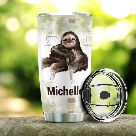 Personalized Sloth Coffee Stainless Steel Tumbler, Personalized Tumblers, Tumbler Cups, Custom Tumblers
