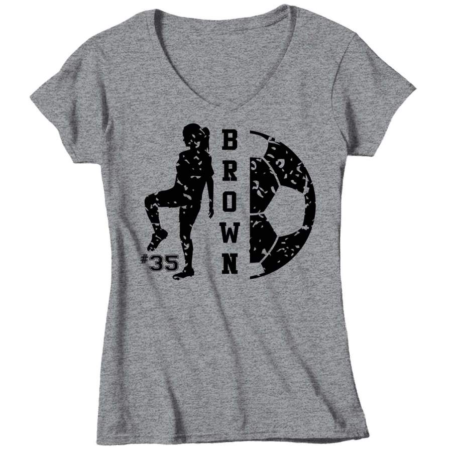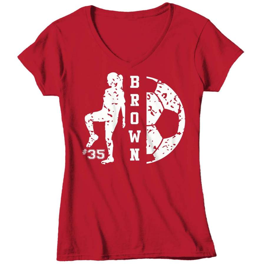 Personalized Soccer T Shirt Custom Soccer Shirts Soccer Mom T Shirt Personalized Shirts Girl Mom V-Neck