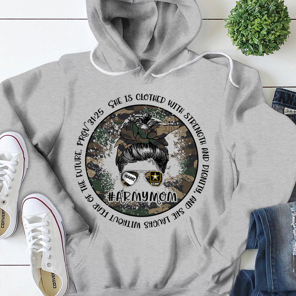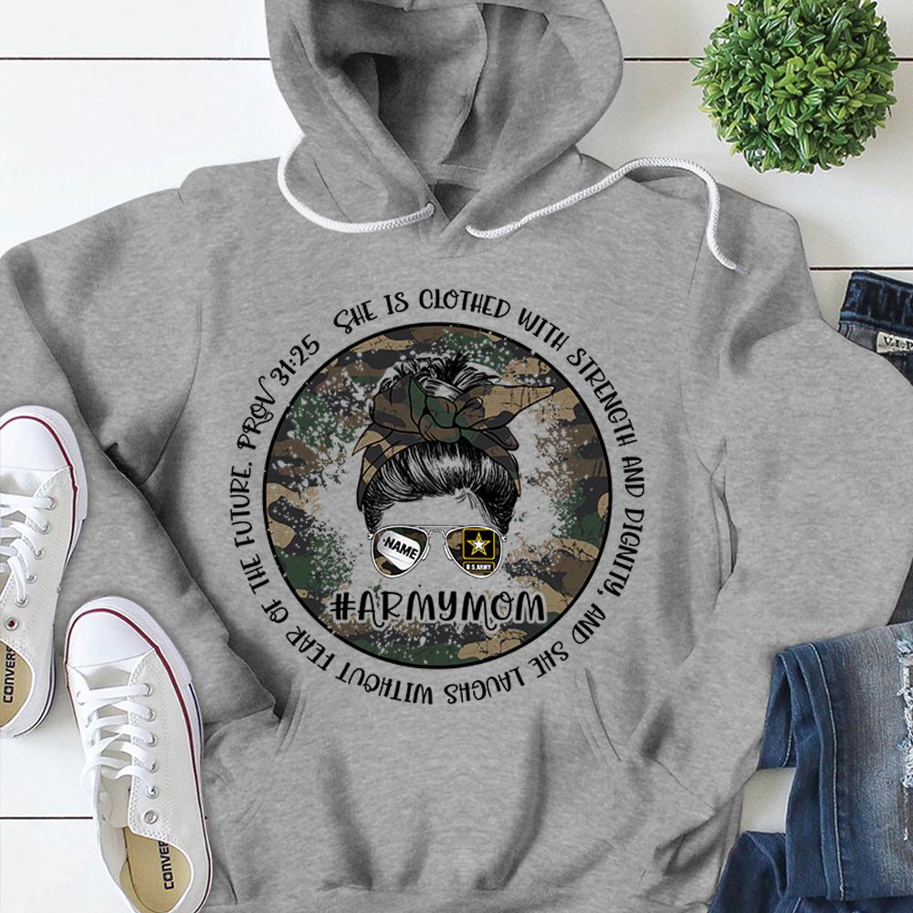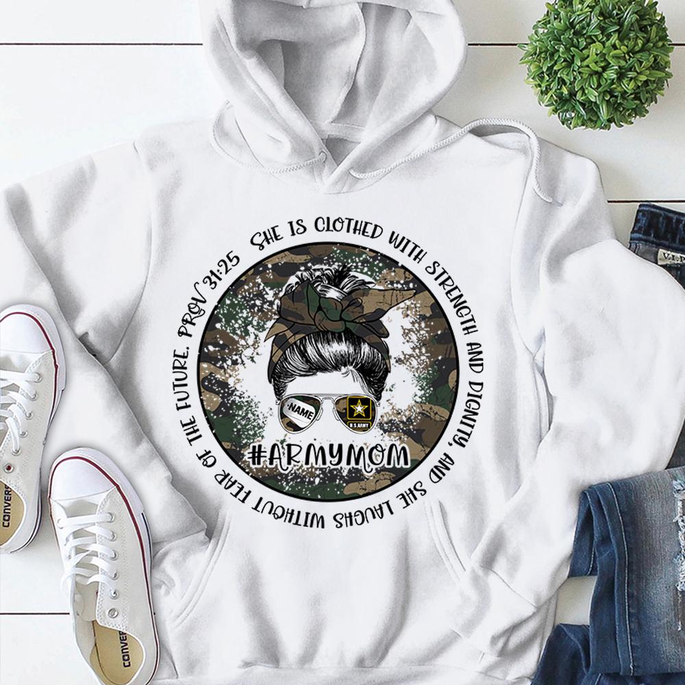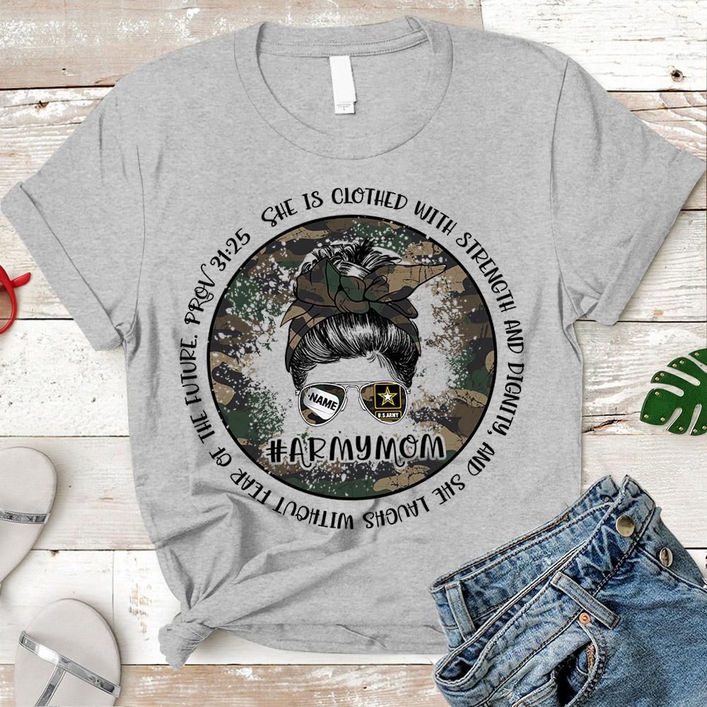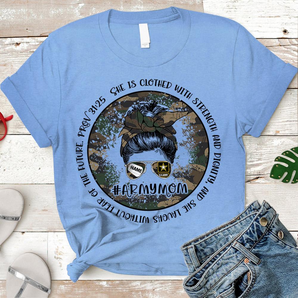 Personalized Soldier’S Name On Dog Tag & Family Member – She Is Clothed With Strength And Dignity And She Laughs Without Fear Of The Future Tshirt – K1702 – Loqn