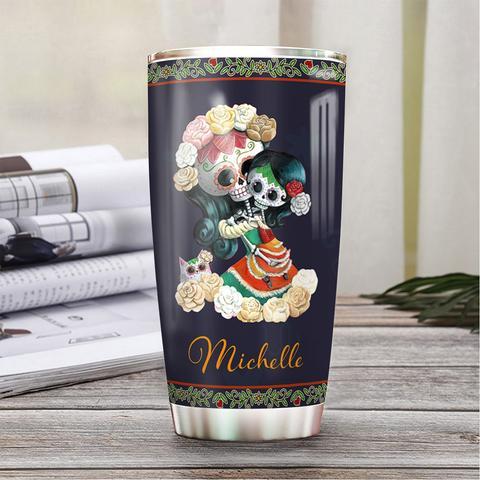 Personalized Sugar Skull Mom To Daughter Stainless Steel Tumbler, Personalized Tumblers, Tumbler Cups, Custom Tumblers