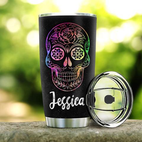 Personalized Sugar Skull Storm Stainless Steel Tumbler, Personalized Tumblers, Tumbler Cups, Custom Tumblers