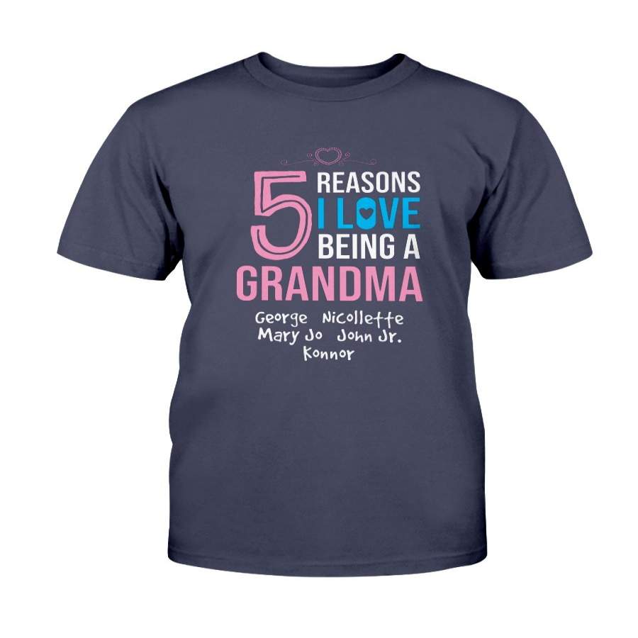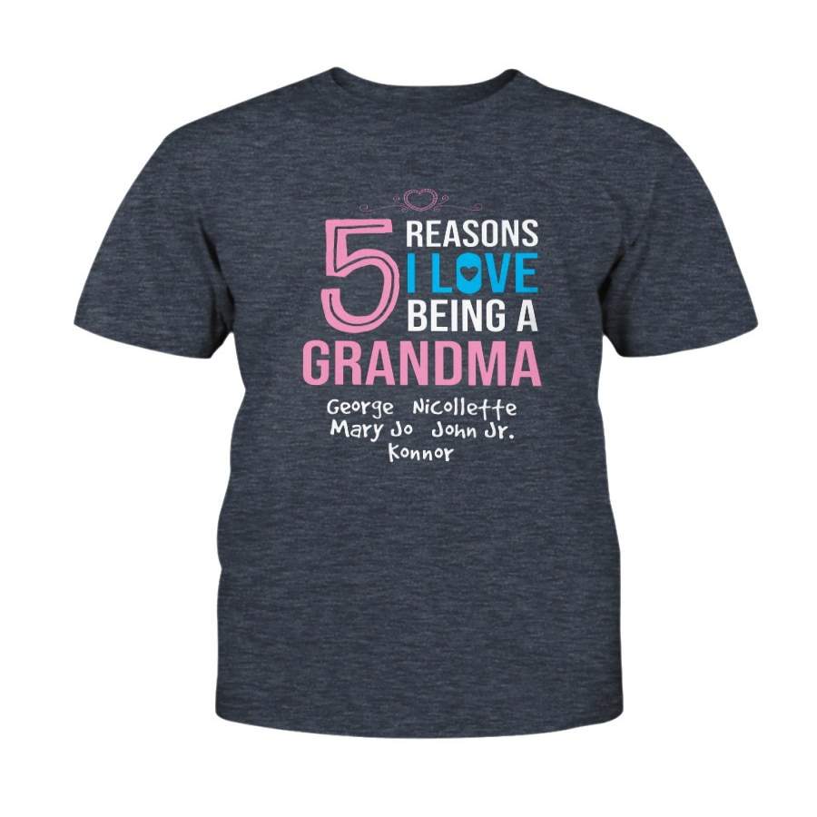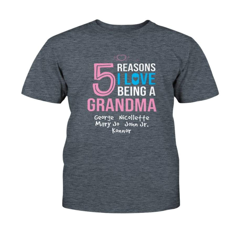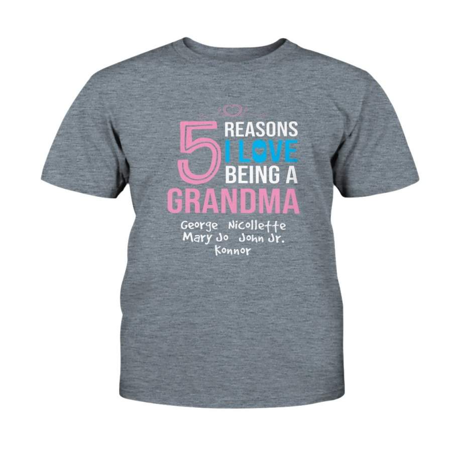 Personalized T-Shirt 5 Reasons I Love Being A Grandma With Kid’S Names