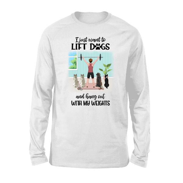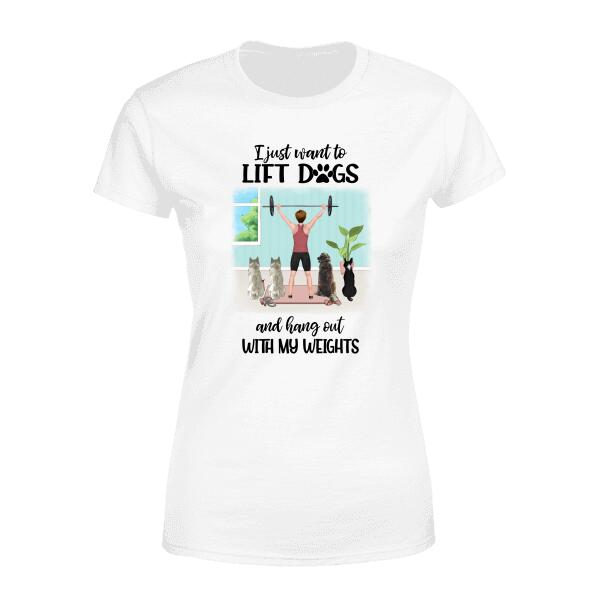 Personalized T-Shirt, I Just Want To Lift Dogs And Hang Out With My Weights, Gift For Fitness & Dog Lovers