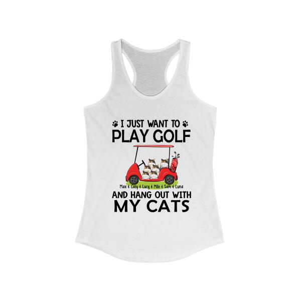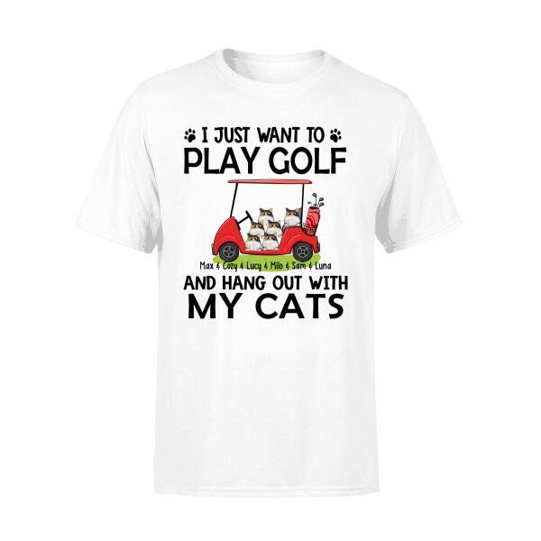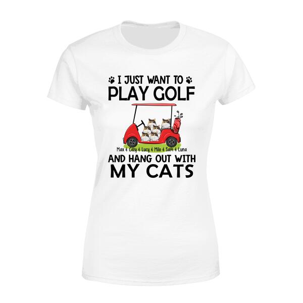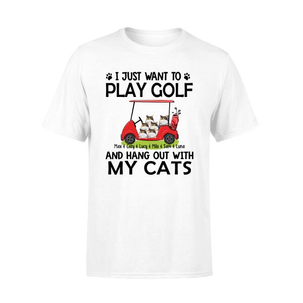 Personalized T-Shirt, I Just Want To Play Golf And Hang Out With My Cats, Gift For Golfers, Cat Lovers