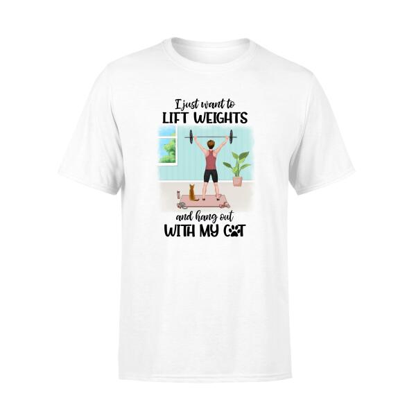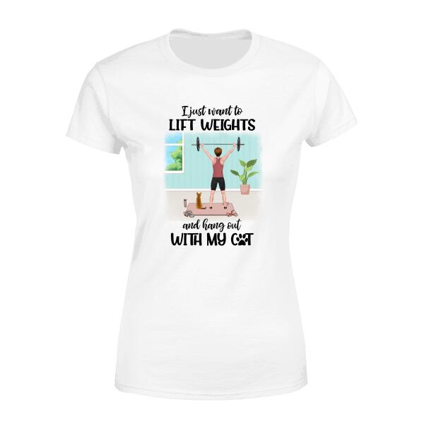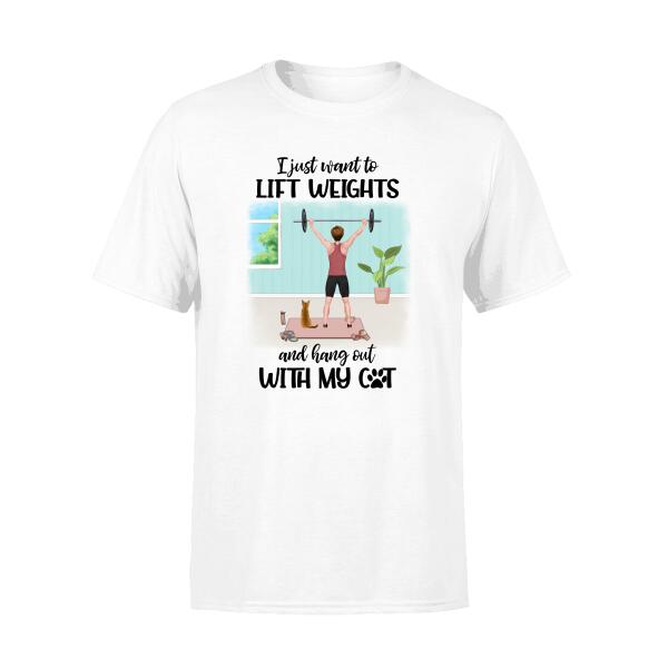 Personalized T-Shirt, Woman Lifts Weights With Cats, Gift For Cat Lovers, Fitness Lovers