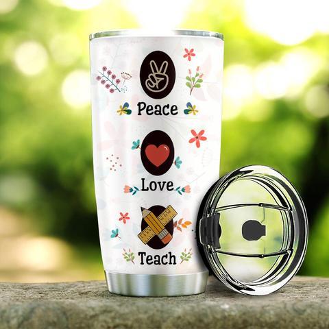 Personalized Teacher Peace Love Teach Stainless Steel Tumbler, Personalized Tumblers, Tumbler Cups, Custom Tumblers