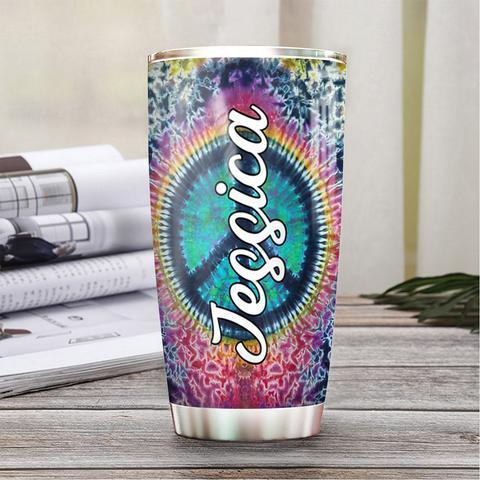 Personalized Tie Dye Hippie Peace Stainless Steel Tumbler, Personalized Tumblers, Tumbler Cups, Custom Tumblers