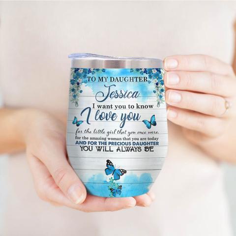 Personalized To My Daughter Blue Butterfly Wine Tumbler, Personalized Tumblers, Tumbler Cups, Custom Tumblers