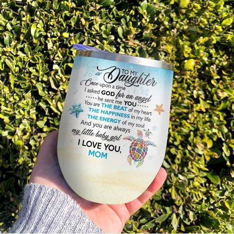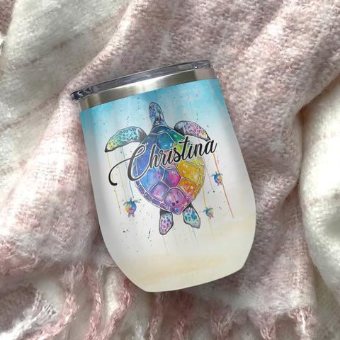 Personalized To My Daughter Turtle Colorful Wine Tumbler, Personalized Tumblers, Tumbler Cups, Custom Tumblers
