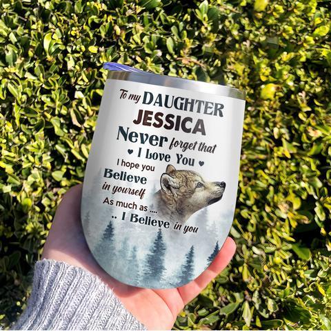 Personalized To My Daughter Wolf Wine Tumbler, Personalized Tumblers, Tumbler Cups, Custom Tumblers