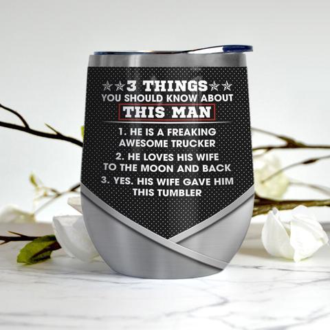 Personalized To My Trucker Husband Wine Tumbler, Personalized Tumblers, Tumbler Cups, Custom Tumblers