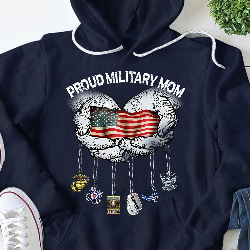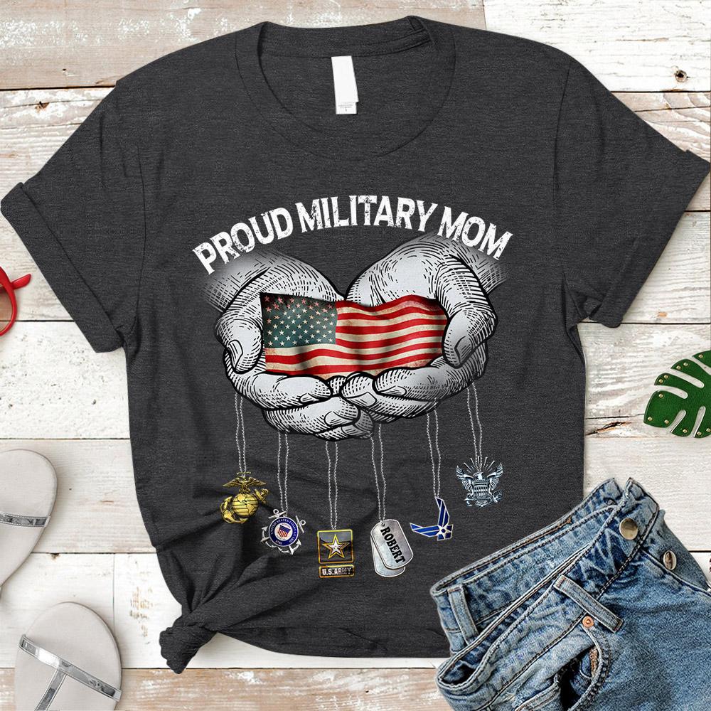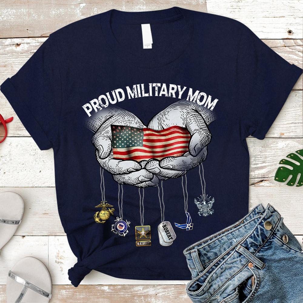 Personalized Tshirt With Name On Dog Tag, Family Member & Military Branch – Proud U.S.Army Mom, For All Military Branches – K1702 – Do99