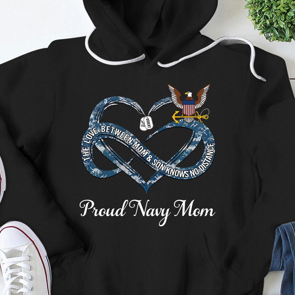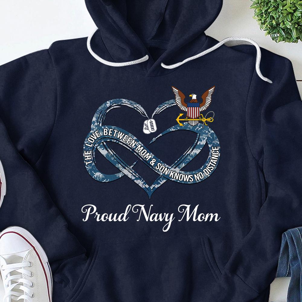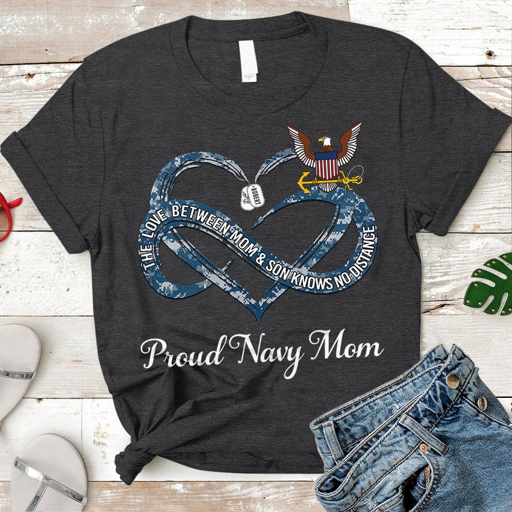 Personalized Tshirt With Sailor’S Name & Family Member The Love Between Mom And Son Knows No Distance Proud Military Mom – K1702 – Do99