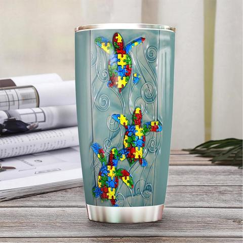 Personalized Turtle Autism Stainless Steel Tumbler, Personalized Tumblers, Tumbler Cups, Custom Tumblers